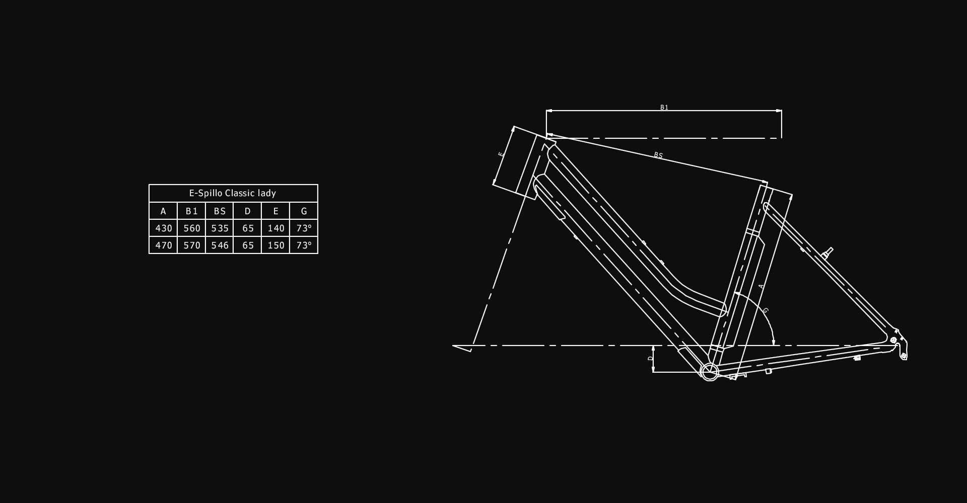 E-Spillo Classic Step Thru, Alu PG 6061,V-brake, O.L.D.139mm for rear hub motor unit, sizes: 43, 47cm